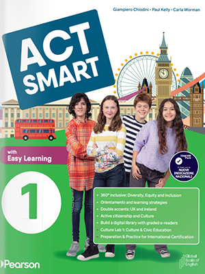 Описание: Act Smart — это курс английского языка от Pearson для учащихся средних школ Италии (Secondaria di I grado), разработанный с учетом принципов инклюзивного обучения и включающий цифровые ресурсы, методику CLIL и темы активной гражданской позиции. Он способствует активному обучению, развитию навыков и соответствует Глобальной шкале английского языка (GSE).