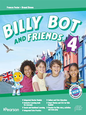 Billy Bot is a series of English textbooks for primary grades from Pearson. Designed with inclusive learning principles in mind, the course incorporates digital resources, CLIL methods, and active citizenship topics. It promotes active learning, skill development, and is aligned with the Global Scale of English (GSE).